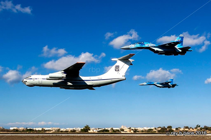 Сегодня, 26 сентября, в Украину возвращается ИЛ 76 мелитопольской авиабригады. Наш самолет вместе с двумя СУ-27 принимал участие в Malta International Airshow.