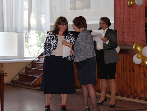 Официальные и душевные слова поздравлений прозвучали для юбиляров от заместителя начальника горуо Елены Чернышевой, инспектора школ горуо Галины Демченко и главы городской организации профсоюза работников образования. В честь праздника около 20 педагогов школы были отмечены грамотами департамента образования Запорожской облгосадминистрации.