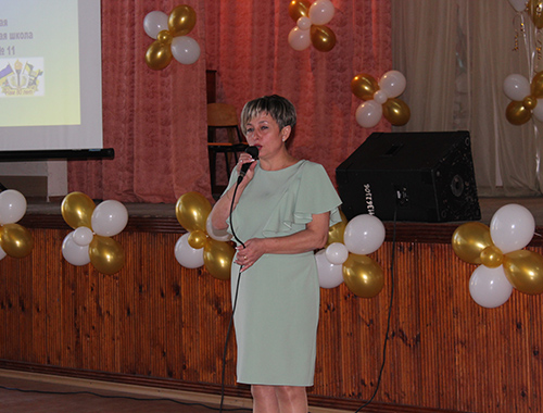Нынешний директор 11-й школы Маргарита Овсянникова рассказала, что когда-то она пришла в эту школу учителем, и за 25 работы стала директором. Только благодарности прозвучали из ее уст: учителям, у которых она перенимала опыт, учителям, которые сейчас вместе с ней, представителям власти и горуо, которые помогают школе, родителям за детей и самим детям.