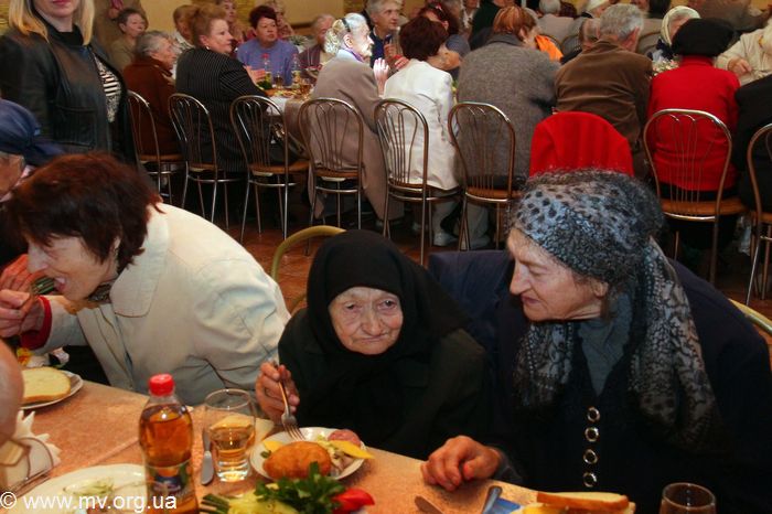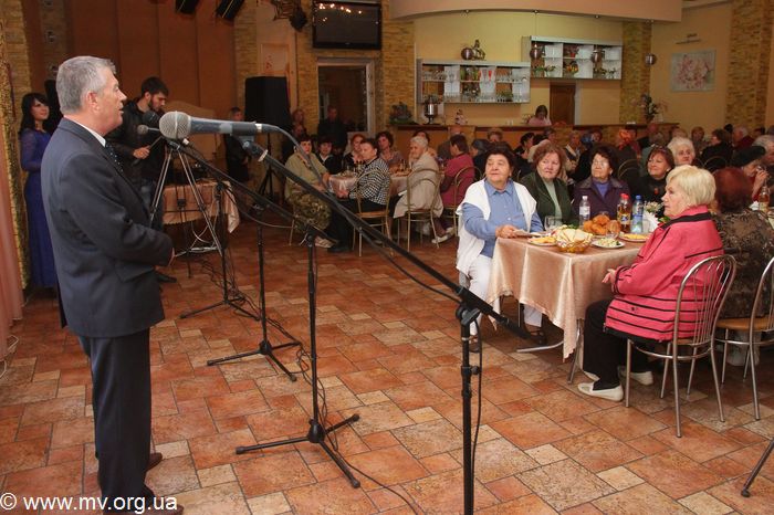 За празднично накрытыми столами собрались сто подопечных Мелитопольского территориального центра социального обслуживания и представителей ветеранских общественных организаций. Чествование мелитопольцев преклонного возраста стало уже доброй традицией. Городская власть и меценаты организовали и в этом году праздничные посиделки с концертной программой. Но сначала к собравшимся со словами поздравлений, уважения и благодарности за их труд и пройденный жизненный путь обратились гости встречи - городской голова Сергей Минько, начальник управления соцзащиты населения Александр Коротков, директор терцентра Александр Черкасов и председатель городского совета ветеранов войны и труда Евгений Бабенко.