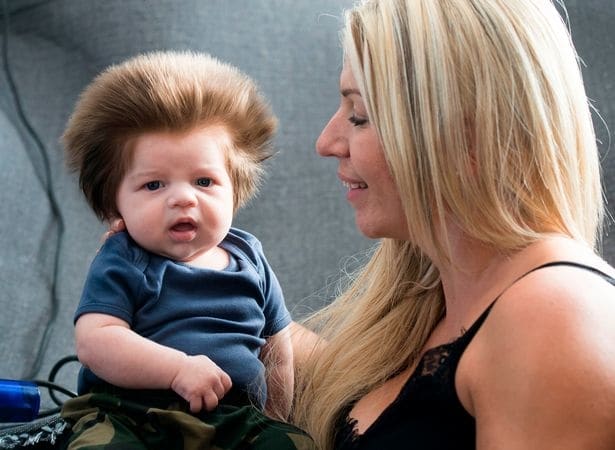Она говорит, что густота волос ее сына сначала удивила принимавшего роды акушера, а затем начала приводить в недоумение окружающих. По словам женщины, визит в супермаркет вместо обычных сорока минут теперь занимает два часа, поскольку покупатели не могут пройти мимо ее сына и постоянно останавливают их.
