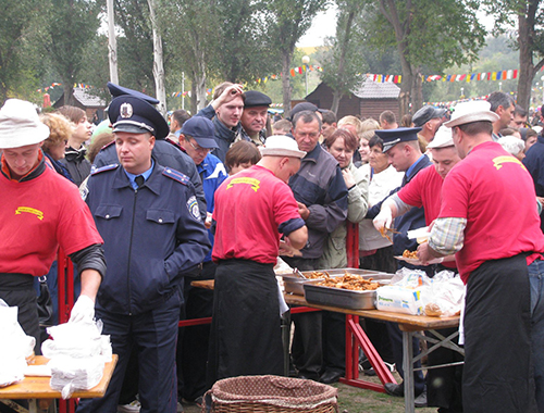Как и было обещано организаторами, более 2 тысяч куриных крылышек, пожареных для установления кулинарного рекорда Украины, после регистрации рекорда были розданы всем желающим.