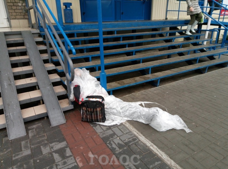 Тело накрыли полиэтиленом. По словам правоохранителя, дело стоит за судмедэкспертами, которые должны забрать труп. Сейчас они находятся на других вызовах.