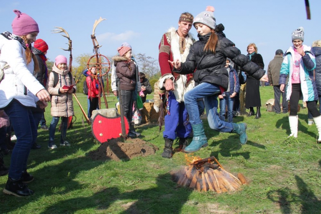 Гости праздника обменивались энергией с камнем (Стихия Земли), умывались родниковой водой (Стихия Воды), били в колокол (Стихия Воздуха), и прыгали через костер (Стихия Огня).