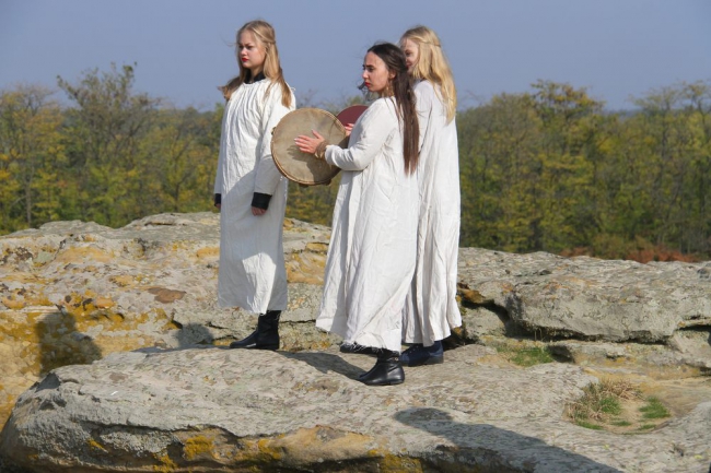 Отметим, что и погода сегодня благоволила к тем, кто решил оживить историю. А Каменная Могила на фоне золотой листвы выглядела особенно праздничной.