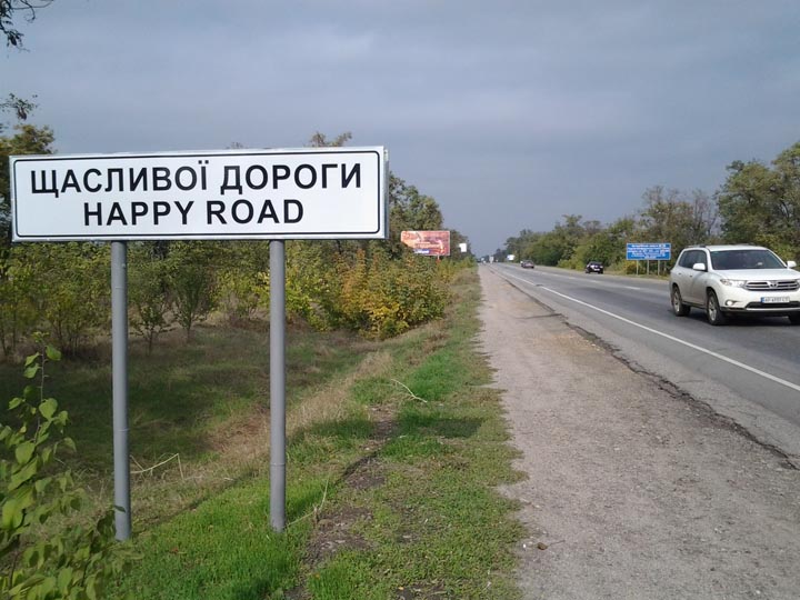 А что, вполне годится годится для переименования - вместо автодороги "Харьков-Мелитополь" просто "Счастливая дорога".