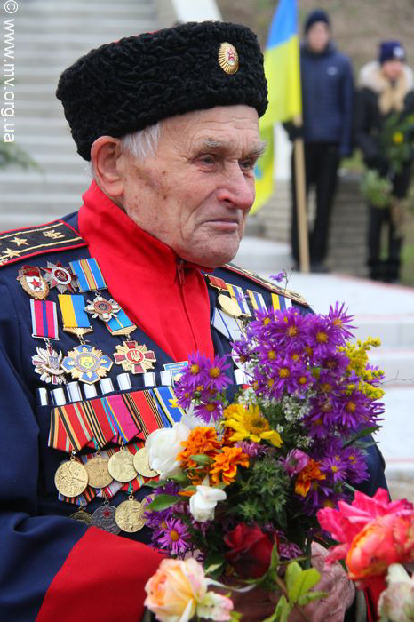 Михаил Спиридонович приехал на праздник в парадной форме Кубанского казачьего полка, в составе которого воевал. Правда признался, что в войну, конечно, ходили кто в чем, но сейчас ему эту форму носить приятно.