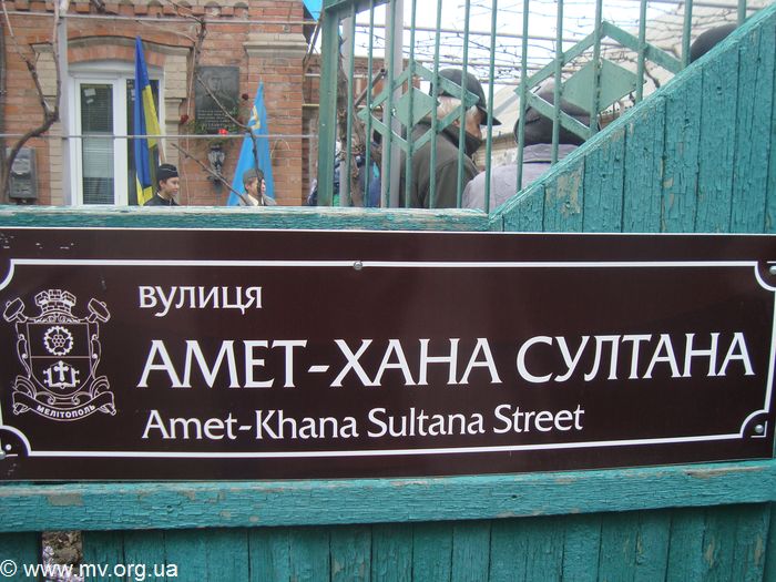 Митинг состоялся на улице, названной в его честь, во дворе дома №8. На этом доме установлена мемориальная табличка с надписью: «В этом доме останавливался летчик-испытатель, подполковник, Дважды Герой Советского Союза Амет-Хан Султан (25.10.1920-01.02.1971)». В мероприятии приняли участие представители ветеранских организаций, крымско-татарской общины, ученики и учителя школы №22, а также жители улицы Амет-Хана Султана (бывш. Октябрьская).