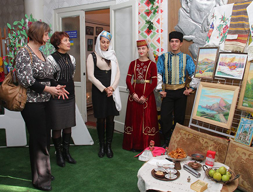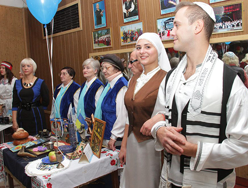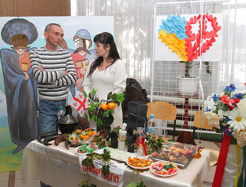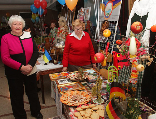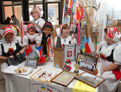 Входишь в фойе ДК, проходишь украшенный лентами и цветами настоящий украинский тын и попадаешь в гости к немцам, чехам, караимам, крымским татарам, белорусам, евреям и представителям 15 городских национально-культурных обществ. На их подворьях представлены национальные символы, одежды, предметы быта, блюда и национальная литература. Хозяева подворий в национальных костюмах улыбками и радушными словами приветствуют дорогих гостей, с удовольствием рассказывают о традициях и обрядах своих народов, о своих национально-культурных обществах.
