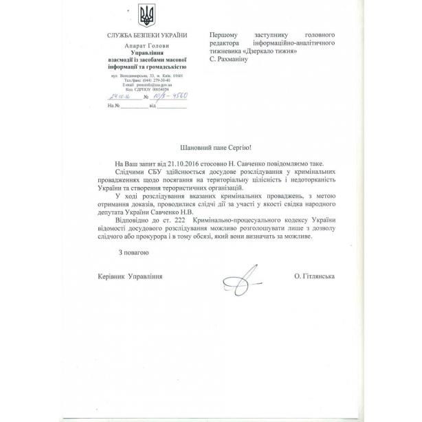 Об этом сообщает ONLINE.UA со ссылкой на DT.UA, который обнародовал документ, полученный им от СБУ в ответ на запрос.