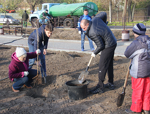 Горожане и чиновники озеленяют Мелитополь, фото Сергея КРЫЛОВА