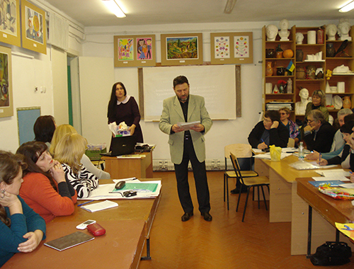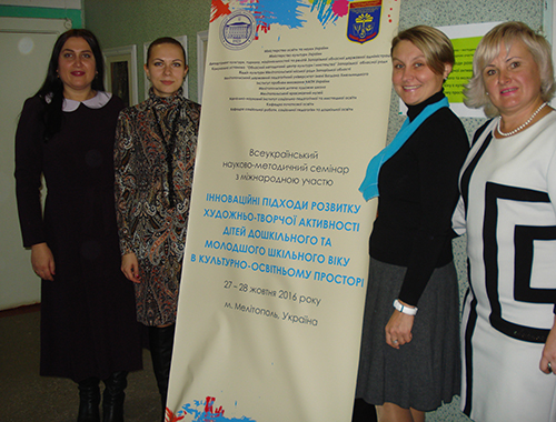 Тема IV-го Всеукраинского научно-методического семинара - "Инновационные подходы развития творческой активности детей дошкольного и младшего школьного возраста в культурно-образовательном просторе". Семинар организовали Учебно-научный институт социально-педагогического и художественного образования МГПУ им. Б. Хмельницкого и Мелитопольская детская художественная школа. Представители не только со всей Запорожской области, но и из Киева, Луцка, Днепропетровска, Ужгорода, Одессы, Херсона и даже Польши вели поиск, общались, делились опытом, дискутировали по важной проблеме, суть которой очень просто сформулировал один из участников: "Как не навредить магии детского рисунка, детского творчества".