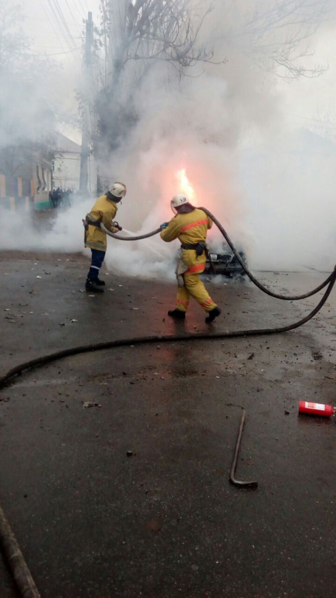 Сегодня около восьми утра около дома на перекрестке ул. А. Невского и ул. Гетманской (Ленина) горел автомобиль "Ланос".