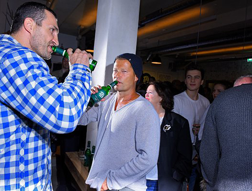 На открытии заведения Владимир Кличко не отказал хозяину выпить с ним по бутылке.