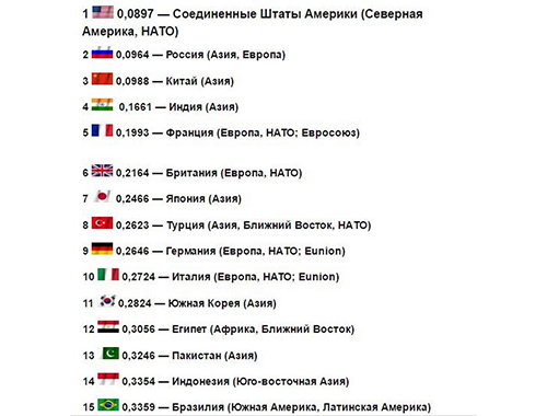 Этот индекс учитывает более чем 50 факторов, влияющих на военную мощь государства