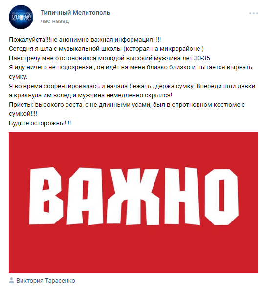В районе музыкальной школы мужчина напал на женщину и попытался вырвать у нее сумочку. Об этом пострадавшая написала в соцсети.