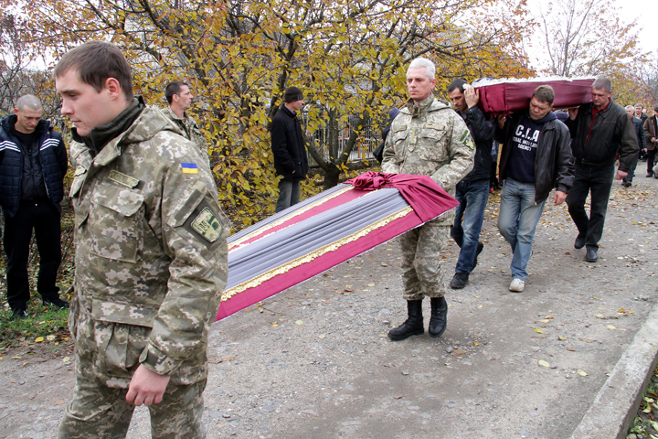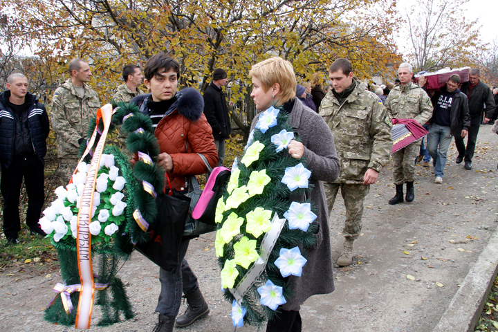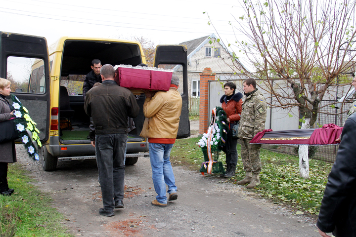 У скромного дома на улице И. Франко стоит много разных людей – пожилые женщины, которые часто ходят по поминкам да похоронам и молодые ребята, которых редко заметишь на скорбных мероприятиях. Среди гражданских немало и людей в военной форме. Люди говорят вполголоса, словно боятся кого-то потревожить. Железные ворота двора открыты настежь, а за ними стоит солдатский гроб.