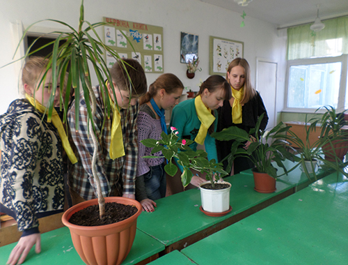 Творческим было задание на станции "Красавец-цветник": участники игры выбирали цветы для украинского веночка и составляли его на бумаге. Живые экспонаты встречали юных биологов на станции "Комнатные растения", где проверялось знание научного и народного название обитателей наших подоконников. Детективные способности выявлялись на станции "Вечнозеленые растения": ребята определяли по плодам названия растений.