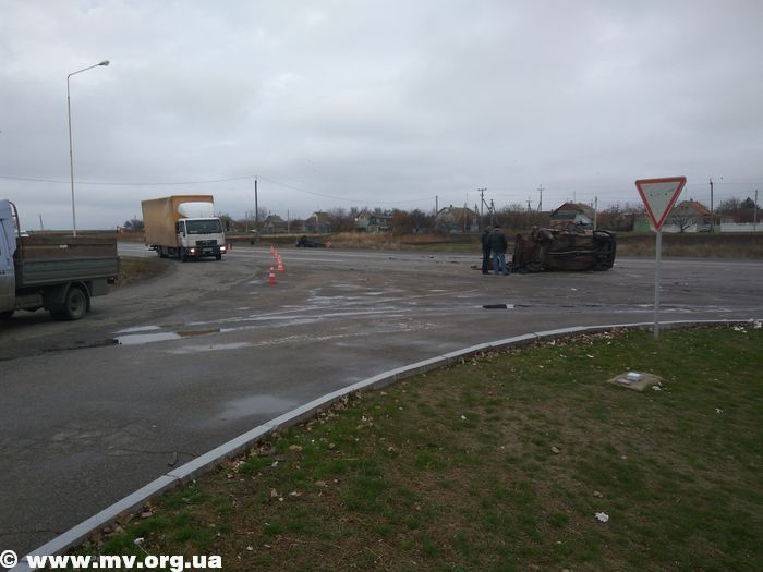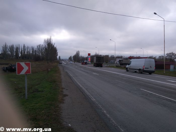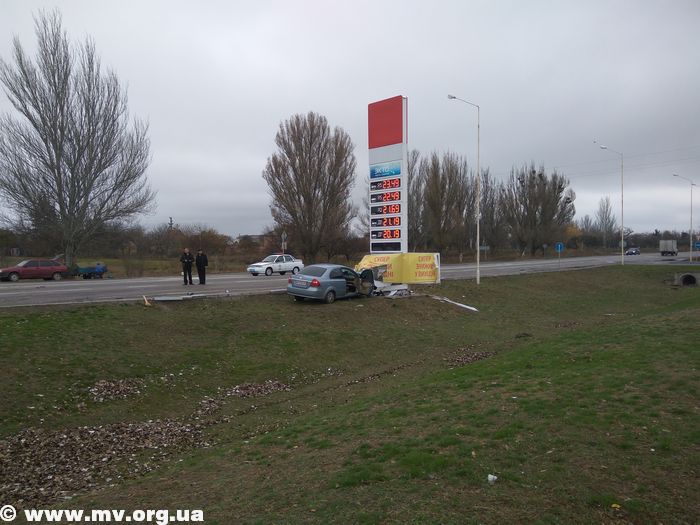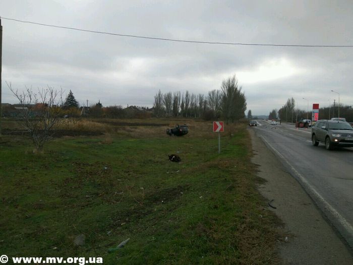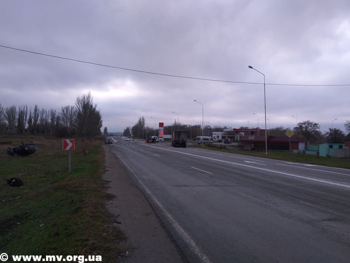 Как сообщают очевидцы, авария произошла около АЗС АМИС (быв. "Лукойл"). Три авто двигались в южном направлении. В результате столкновения одна из машин вылетела на противопроложную обочину и перевернулась, другая врезалась в столб, третья, разбитая, осталась на дороге.