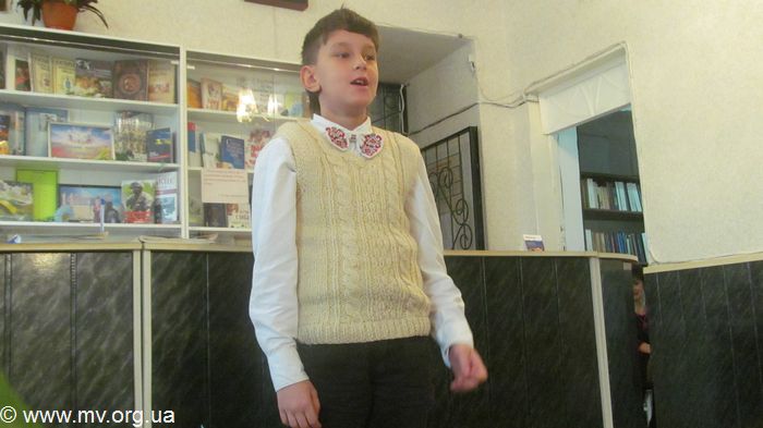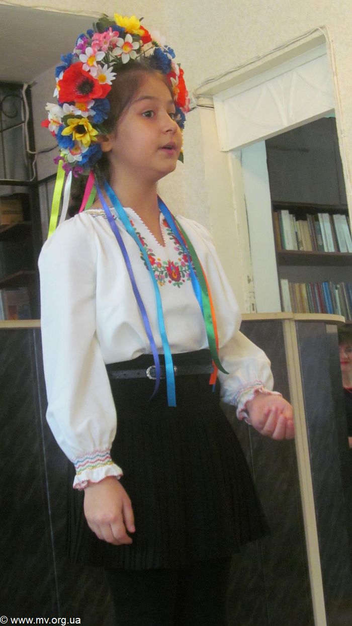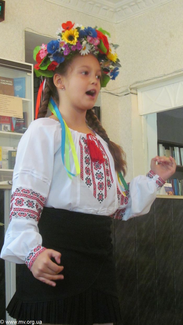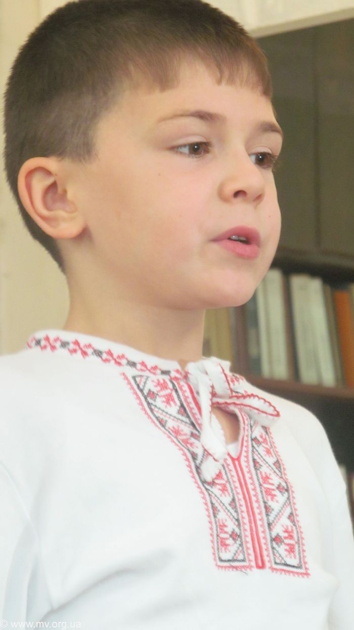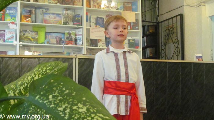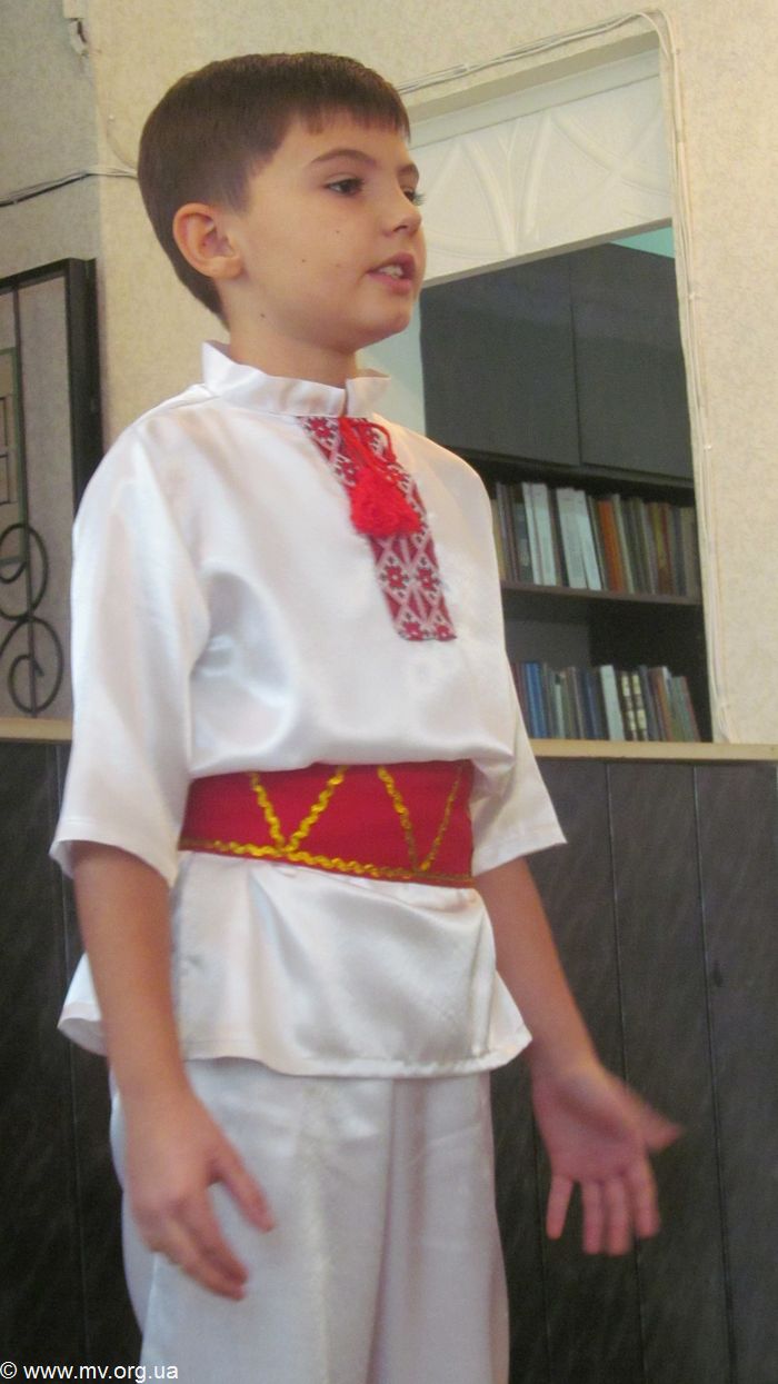 Открывали конкурсную программу самые юные чтецы из категории "Дети". По всему было видно, что они, их родители и педагоги очень тщательно готовились к конкурсу, продумывая до мелочей все без исключения детали. В большинстве своем выступающие были одеты или в национальные костюмы, или в их наряде присутствовали национальные элементы: галстуки-бабочки с украинским орнаментом, носочки с вышивкой, расшитые платья, юбки, блузы, стилизованные пояса. Но и внутреннее содержание не уступало внешнему: ребята очень артистично, проникновенно и эмоционально читали стихотворения, что находило живой отклик в зале. В конце каждого выступления зрители дружно аплодировали юным чтецам.