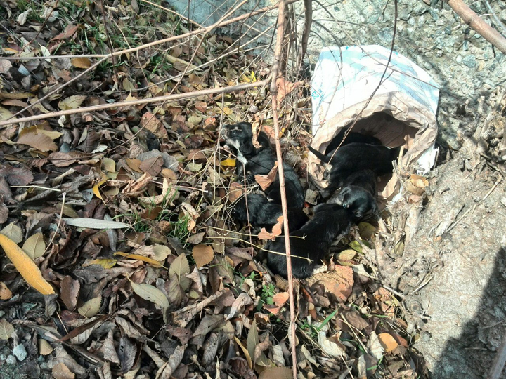 В Мелитополе в мешке выбросили маленьких щенков