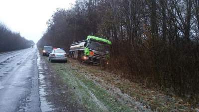 В течение дня две фуры там также слетели с трассы. Также съехал в кювет грузовик, перевозящий опасный груз, возле села Пултовцы Винницкого района.