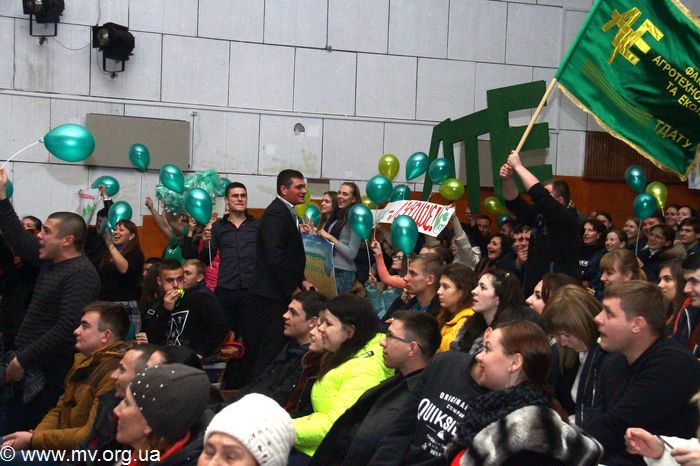 Пары сменяли друг друга на сцене, конкурс следовал за конкурсом, а в зале тем временем сидели студенты, поддерживающие участников от родного факультета. Временами складывалось ощущение, что у них свой конкурс: кто кого перекричит. А время от времени, по вузовской традиции, по залу пробегали парни с огромными флагами факультетов. Самыми дружными, громкими, активными оказались студенты АТЭ. Был бы конкурс болельщиков, они бы стали в нем несомненными победителями. Но поддерживали участников не только из зала. На сцену с творческими номерами выходили не только пары-участники, но и другие учащиеся вуза.