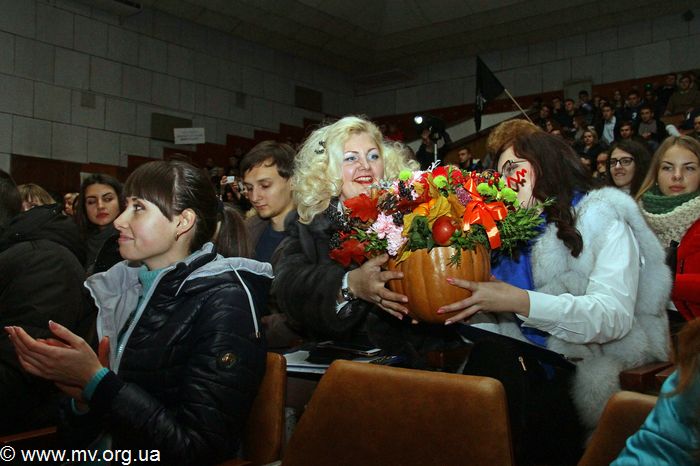 Лишний раз подтвердить, что даже студенты-технологи могут быть фантазерами помог конкурс осеннего букета. Кто создавал оригинальные цветочные композиции, осталось за кадром. А вот презентовали их парни, красивыми стихами описывая букеты, предназначенные для их обворожительных партнерш. Оказалось, что оформленными в красивую композицию могут быть не только розы, но даже самые обычные хризантемы. Главное, правильно их преподать, что студенты и сделали.