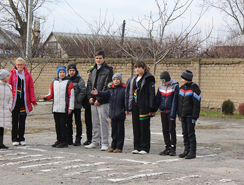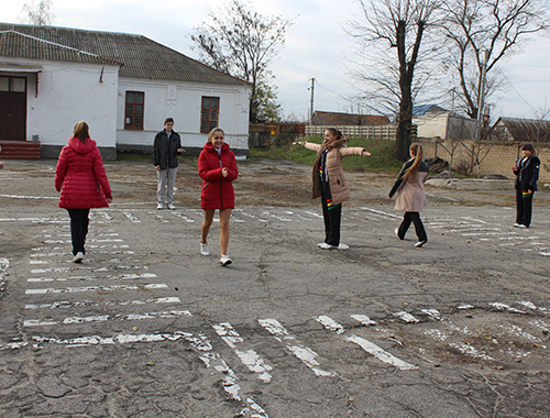 После этого ребята направились на Станцию юных техников. Во дворе это внешкольного учебного заведения нарисована разметка перекрестка. Сначала участники команды инспекторов показали школьникам как нужно переходить дорогу на перекрестке, где нет светофора, а работает инспектор. В таких случаях инспектор регулирует движение руками при помощи жезла. Чтобы не случилась беда, нужно знать, кому и куда разрешает движение определенное указание. Детям показали несколько комбинаций и как при этом должны двигаться и пешеходы, и автотранспорт. После этого 6-классники вместе с инспекторами опробовали полученные знания на практике.
