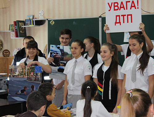 Занятие организовала команда инспекторов дорожного движения гимназии №19, победители областного этапа Всеукраинского смотра-конкурса "ЮИД-2016" и участники финальных соревнований конкурса. Поддержку в этом им оказали представители сектора дорожно-патрульной полиции Мелитопольского отделения ГУ НП Украины в Запорожской области.