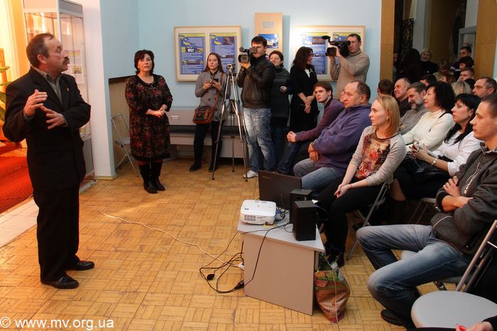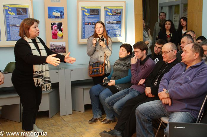 Для собравшихся сотрудники музея сделали экскурс в историю событий на Майдане, проиллюстрировав свой рассказ фото и видеоматериалами.