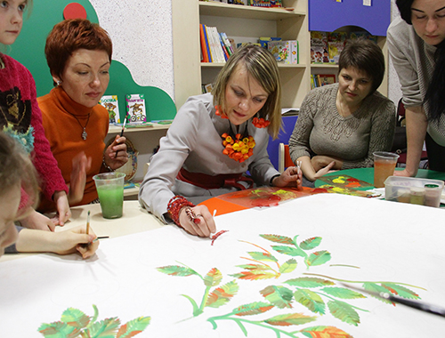 Все, кто посетил 26 ноября центральную городскую детскую библиотеку "Мальвина" не только попали в удивительно яркий, сказочный мир петриковской росписи, создали "Дерево жизни", но и пообщались с замечательной харьковской художницей и дизайнером, человеком творческим и разносторонним, Олесей Вакуленко.