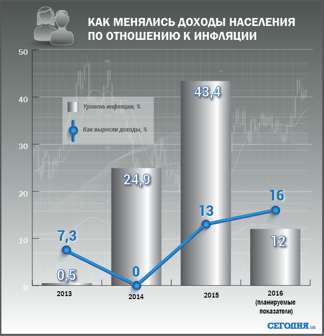 "Кумулятивная инфляция была достаточной высокой. Она составила за несколько лет 70%. Для того, чтобы реальные доходы выросли – соцстандарты должны были увеличиться на 70%. Что касается более усредненного показателя, это уровень инфляции по состоянию трех лет: 2014, 2015 и 2016. Кумулятивный уровень инфляции превысит отметку в 90%. Для того, чтобы украинцы как минимум не потеряли свои доходы, должны получать зарплату в 1,9 раза больше", – поясняет исполнительный директор фонда Блайзера Олег Устенко.