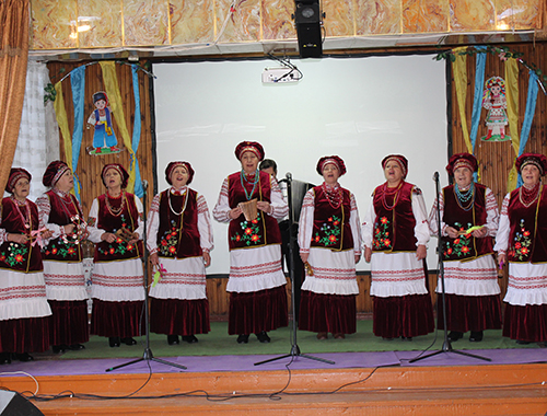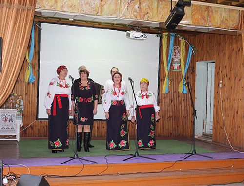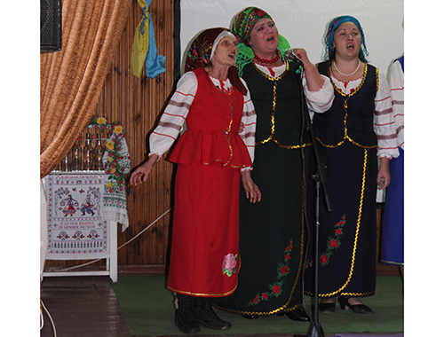 Пестрят старинные платки, развеваются яркие юбки и бусы. Песни грустные и азартные сменяют друг друга. Улыбки и перешептывания зрителей вплетаются в живую музыкальную ткань песен… «Зоряночки» (Тихоновка), «Троянда» (Новопилиповка), «Надвечір`я» (Новгородковка), «Чаривницы» (Константиновка), «Калинонька» (Вознесенка), Таисия Овсянникова, Надежда Тенсина, Катерина Ганжа… Для финала организаторы подготовили сюрприз – фольклорный ансамбль "Веснянка" из Данило-Ивановки (руководитель Татьяна Сергеева). Ансамбль – участник всеукраинского телепроекта «Фольк-мьюзик». Их исполнение очень артистично, костюмы и элементы декораций превращают выступление в мини-спектакль. Не зря по итогам конкурса они заняли первое место.