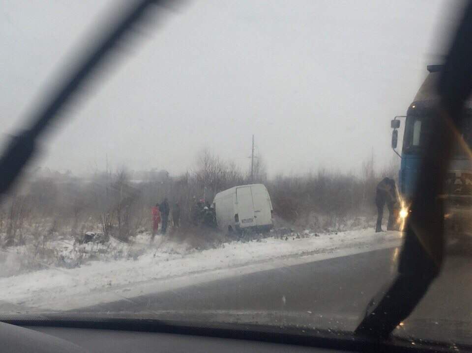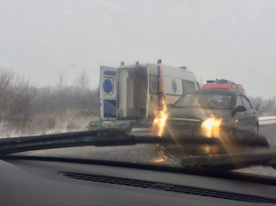 Как стало известно, автобус выбросило с трассы, а маршрутка отлетела к обочине. На дороге много осколков и обломков. Полиция на место происшествия не приехала.