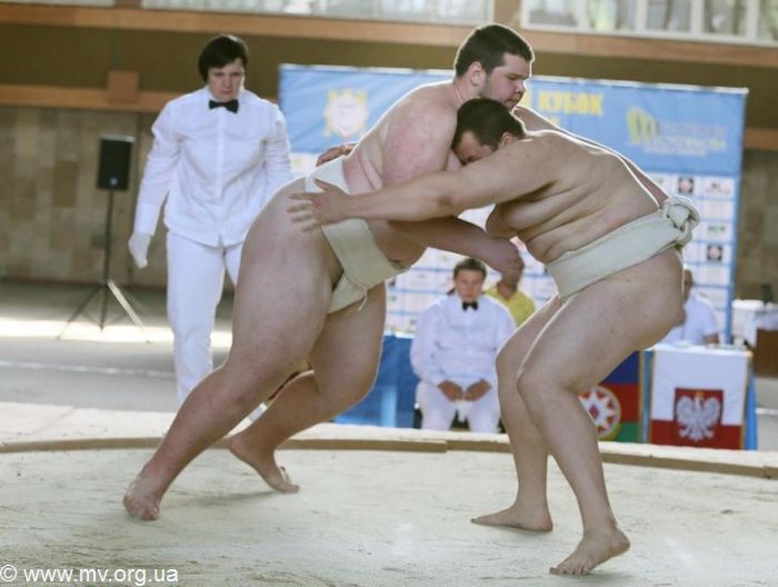 В эти же дни во Львове впервые проходил открытый Кубок Львова по борьбе сумо, на который приехали команды из Львовской, Харьковской, Волынской, Херсонской, Донецкой, Винницкой, Николаевской, Киевской, Ровенской, Запорожской, Сумской, Одесской и Черкасской областей, а также из Польши, Египта и Германии. Среди претендентов на медали - сильнейшие сумотори Украины, призеры и чемпионы мира и Европы. Наш город и область представлял 19-летний Сергей Соколовский - мастер спорта международного класса, пятикратный чемпион Европы, трехкратный призер чемпионатов мира по сумо. По словам Сергея, он провел 15 поединков в абсолютной весовой категории и со стопроцентным результатом стал победителем. "Это была генеральная репетиция перед чемпионатом Европы среди взрослых по сумо, который будет проходить в январе в Венгрии. А главная цель - Всемирные игры летом, на которые Сергей завоевал лицензию. Если он успешно выступит, то получит звание заслуженного мастера спорта", - рассказал тренер спортсмена Р. Куксов.