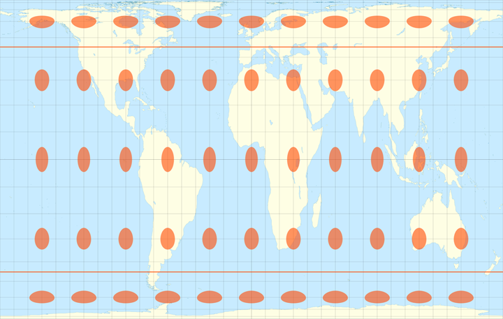 Более точное представление о Земле можно увидеть на проекции Галла-Петерса, которая сохраняет площадь, искажая форму.