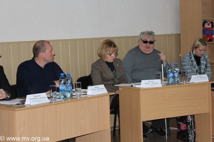 Представители городской власти, депутатского корпуса, городских служб и управлений, общественных объединений, организаций людей с инвалидностью и меценаты обсудили проблемы инвалидов и пути их решения. Сначала руководители мелитопольских организаций людей с инвалидностью провели небольшие презентации своих обществ и направлений деятельности. Собравшиеся познакомились с обществом детей-инвалидов с детства и их родителей "Лебедушка", городским обществом инвалидов, обществом инвалидов войны и Вооруженных Сил, центром реабилитации слепых, Украинскими обществами слепых и глухих, центром реабилитации смешанного типа для инвалидов и детей-инвалидов, спортивным клубом "Фокис" и благотворительным объединением "Социальный фонд".
