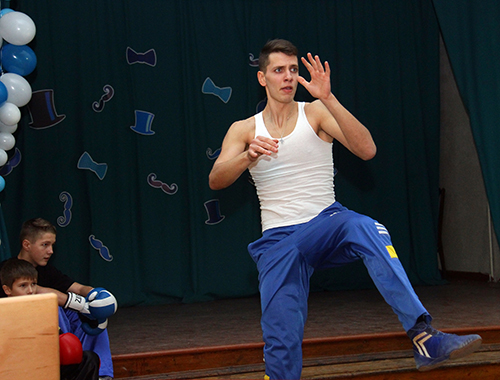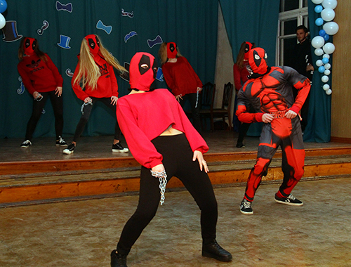 Далее ребята показывали свои таланты. Как оказалось, множество участников по совместительству – танцоры, именно танцами парни в большинстве своем развлекали зрителей и жюри. Спортсмен-кикбоксер Никита разыграл настоящую сценку «Сновидения студентов», где заснул на паре и во сне выиграл выборы ректора, после чего исполнил танец с прекрасными «проверяющими из министерства». Еще один спортсмен Артем соединил танец со спортивными элементами тхэквондо. Также на сцену вышли Дэдпул, Маска и Джокер. Единственным из участников, кто выступил с песенной композицией, был Никита Дворецкий. Вместе с партнершей он исполнил прекрасную композицию «Мы эхо». А студент геофака Вадим разыграл безмолвную сценку о том, что любовь преодолеет любые преграды. Перед сценой стоял большая ширма и вся сценка была "сыграна" тенями на белом полотне. После этого Вадим продекламировал стих.