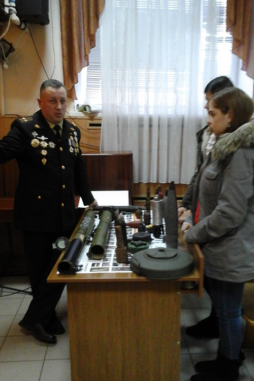 Начальник группы пиротехнических работ Дмитрий Чернов рассказал о видах боеприпасов, рассказывал, что находили в регионе, также ребята могли изучить внутреннее устройство взрывоопасных предметов, так сказать, подержать их в руках.