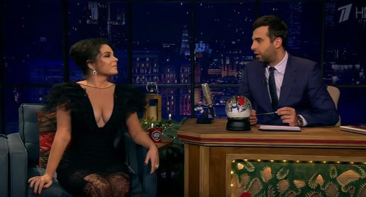Обнаженный бюст артистки смутил ведущего Ивана Урганта.