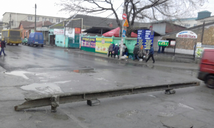 На дорогу положен новый асфальт, но, хотя существенных осадков в Мелитополе в ближайшее время не было, пешеходам приходится обходить лужи.