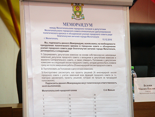 Мэр предложил было подписать некий меморандум, который бы гарантировал, что после окончания 26-й сессии обязательно будет сессия с рассмотрением комиссий и Регламента и ветировать ее решения он не будет. Но "Оппоблок" на такой меморандум не согласился.