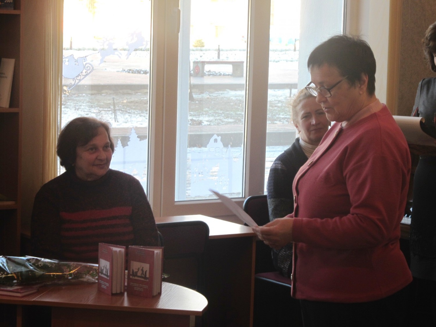 С рождением новой книги С. Непомнящую поздравили ее коллеги по творческом у цеху и друзья. Секретарь ЛИТО Анна Шевченко замечательно сказала, что по ее мнению, талант - это неизлечимая болезнь, симптомы которой мучают человека и днем, и ночью. Но талант - это еще и искра Божья, и она горит в душе Светланы Владимировны. Вот и появляются искренние, проникновенные строки, которыми наполнен новый сборник. Его, как отметила А.Шевченко, нужно и хочется читать от "корки до корки". Члены ЛИТО Елена Гончаренко рассказала, что поэзия С. Непомнящей рождает в ней желание жить, влюбляться и прохожим улыбаться, а Инна Панадий поблагодарила за такую замечательную книгу. И очень знаковыми были слова одной из самых молодых поэтесс литературного объединения Богданы Гайдучек, которая отметила, что хорошо, когда у человека есть любимый писатель. Но неимоверно важно, когда ты можешь общаться со своим любимым писателем. Именно такой для Богданы является Светлана Владимировна, которой юная поэтесса посвятила свое стихотворение.