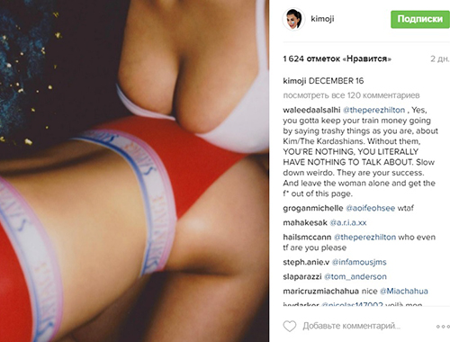 Новый аккаунт получил название @kimoji, уже знакомое поклонникам звезды. В прошлом году телезвезда презентовала приложение с коллекцией именных смайлов, которое называется по аналогии с названием языка смайликов "эмодзи".
