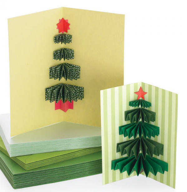 Елочка выполнена из полос бумаги прямоугольной формы, сложенных гармошкой.