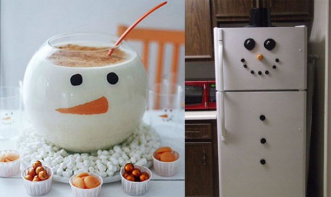 Со снеговиками все совсем просто. Берется любой белый предмет и украшается морковкой и глазками.
