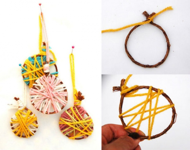 Нитки нужно обмакнуть в клей ПВА и аккуратно обмотать ими надутый воздушный шар. После того, как подсохнет, воздушный шар сдуть.