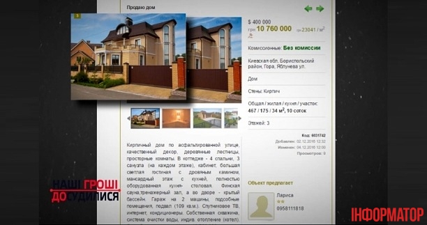 Особняк оформлен на жену судьи Ларису, что имеет официальный доход менее 3 тыс. грн в месяц, – сообщает bihus.info.