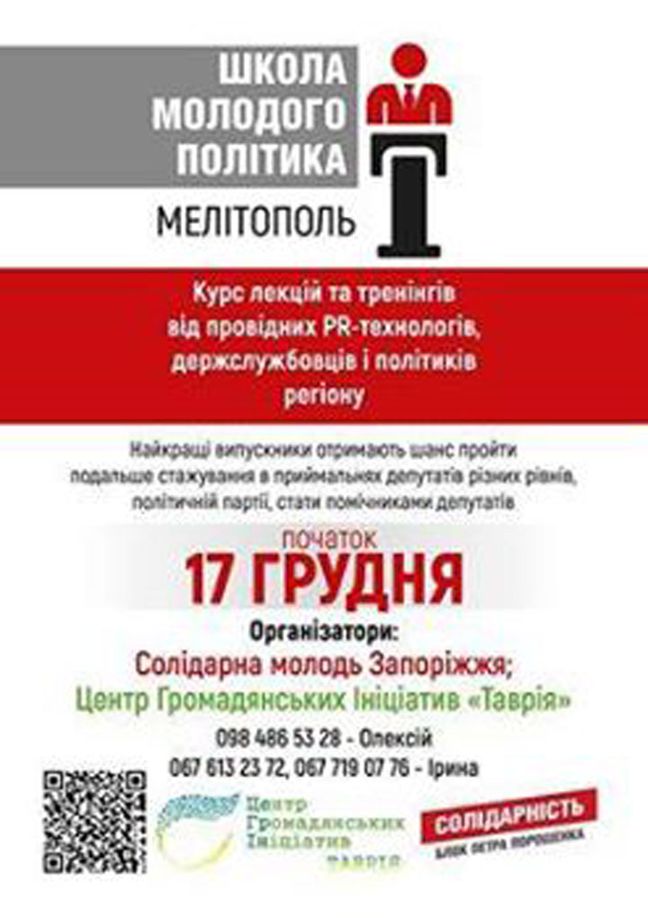 17 декабря в Мелитополе стартовала "Школа молодого политика", организатором которого выступила общественная организация "ЦеГрін "ТАВРІЯ".